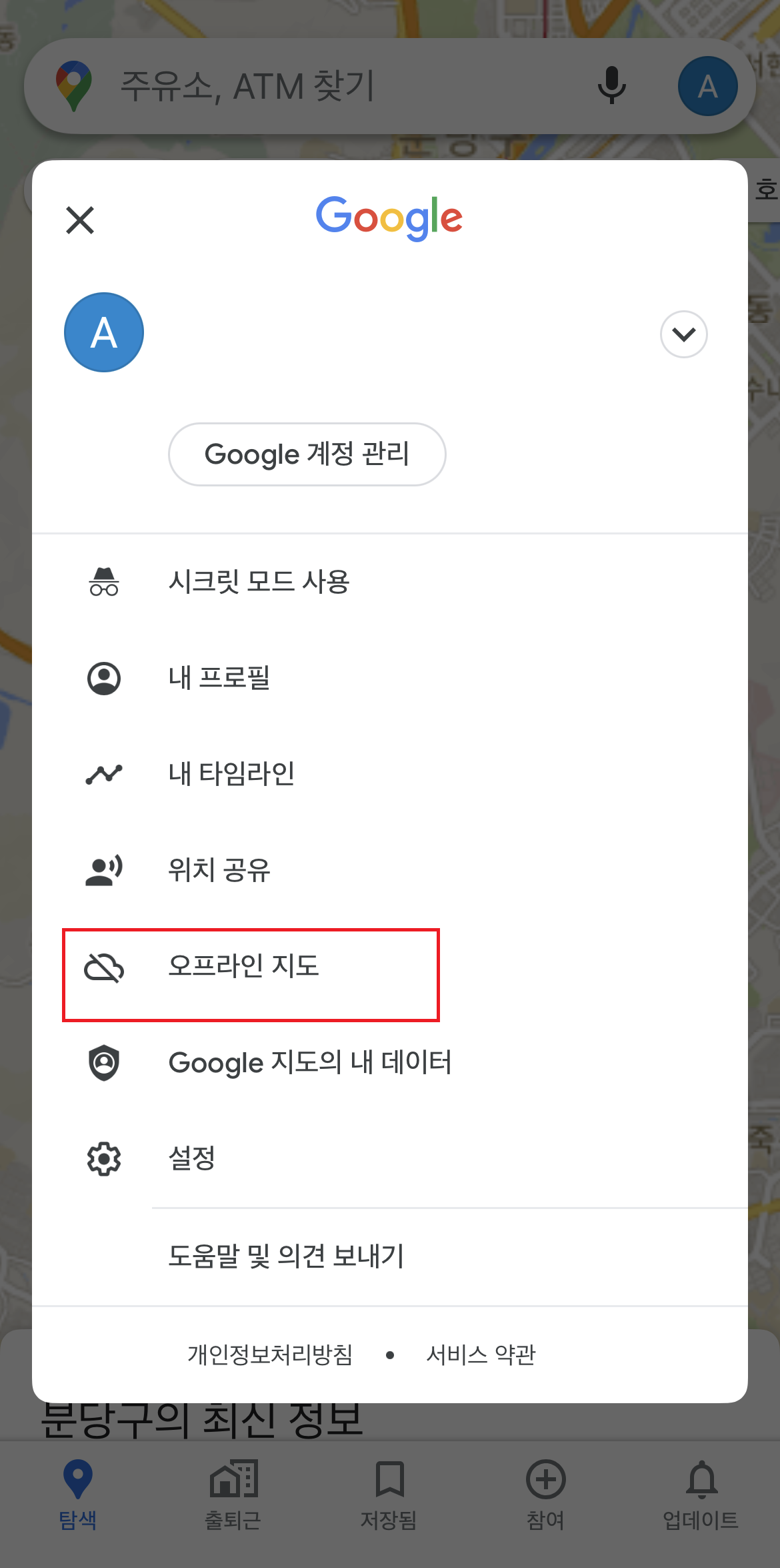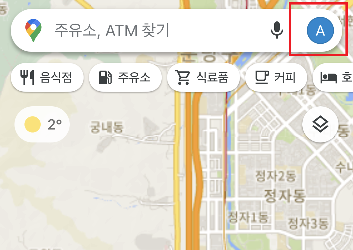 1. 구글지도 앱을 실행 하여 프로필 사진 또는 이니셜 선택