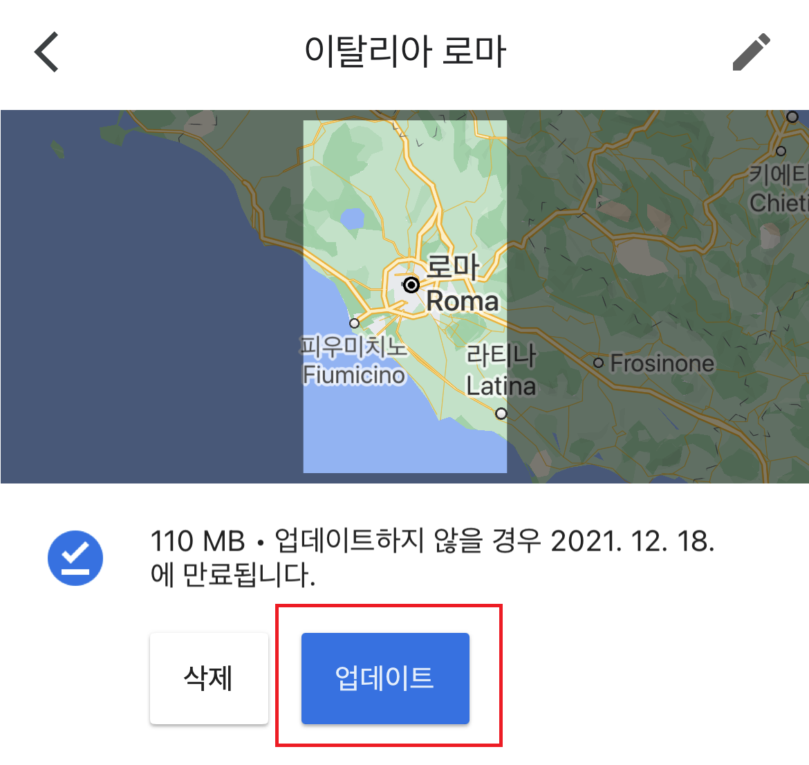 7. 다운로드한 지도를 선택하면 업데이트를 할수 있습니다.