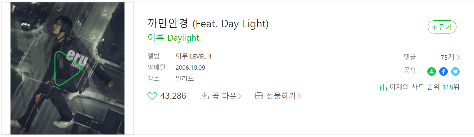 2006년도에 발매된 이루의 까만안경이 역주행 하고 있습니다.